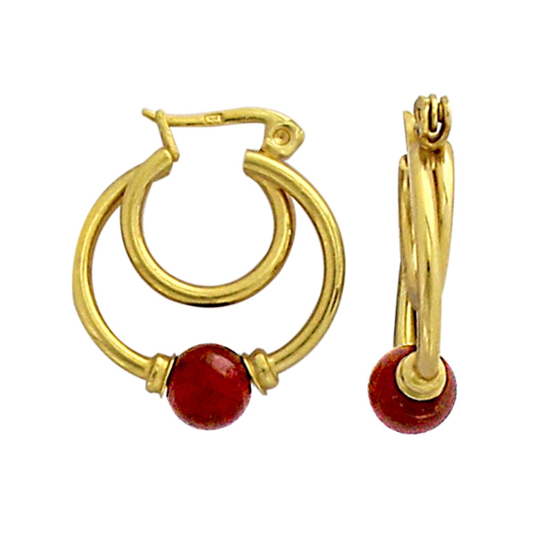 Créoles doubles en plaqué or, pierre de verre rouge