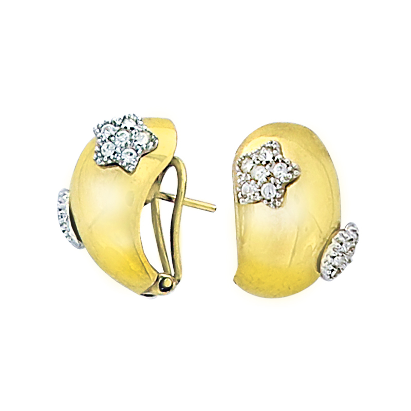 Boucles d'oreilles en plaqué or et cristaux collés.