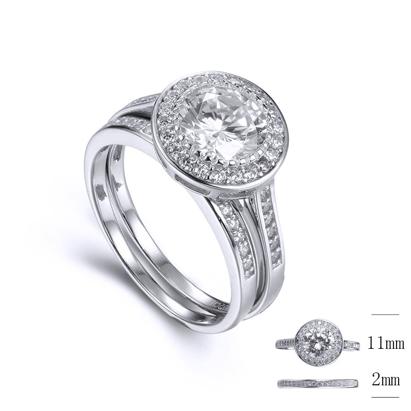 Bague argent et oxyde de zirconium (Alliance + solitaire)