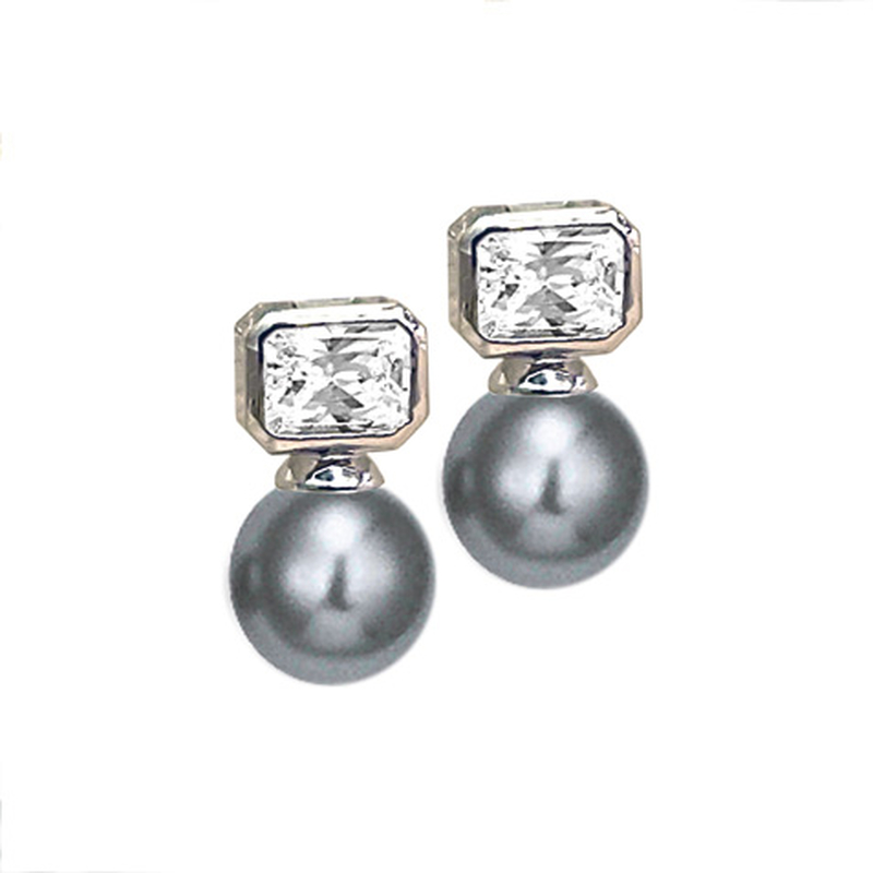 Boucles d'oreilles rhodiées avec oxyde de zirconium et perle d'imitation grise