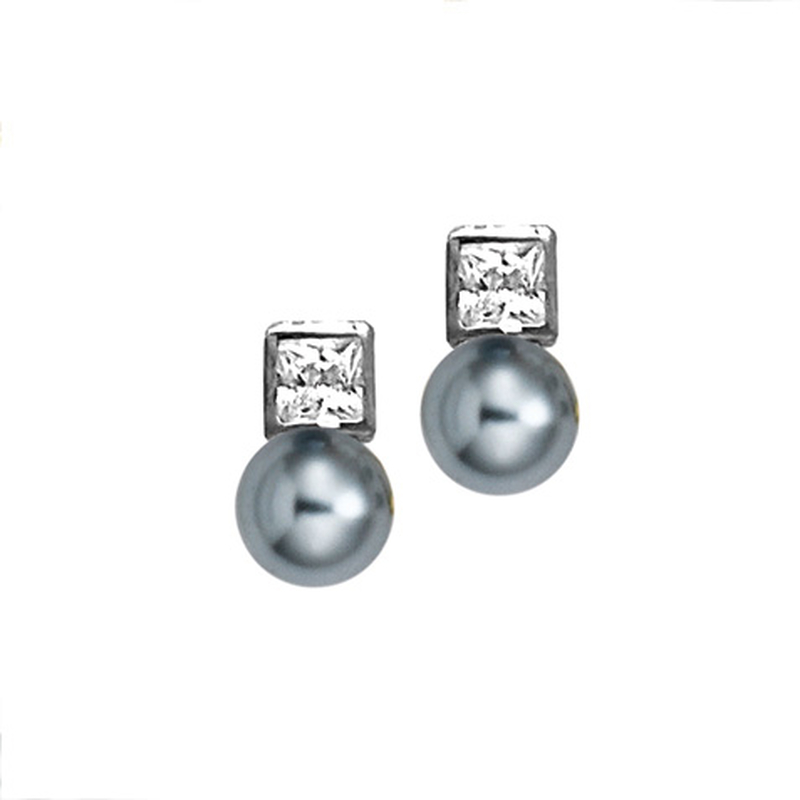 Boucles d'oreilles rhodiée et perles grise d'imitation