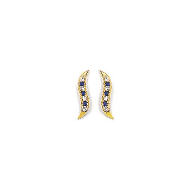 Boucles d'oreilles en plaqué or, oxyde de zirconium bleu et blanc