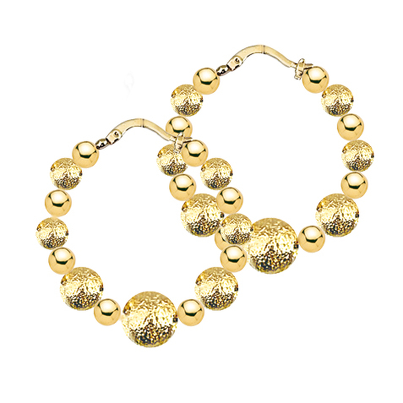 Créoles plaqué or boules dégradées lisses et sablées en diam 38mm
