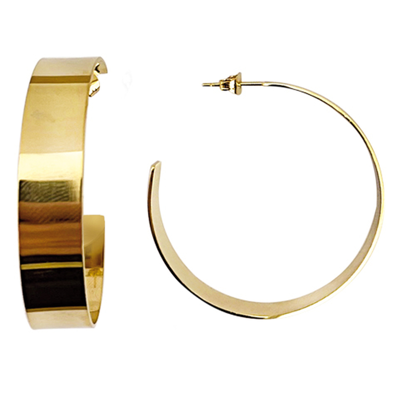 Boucles d'oreilles demi créole large acier doré diam 45mm