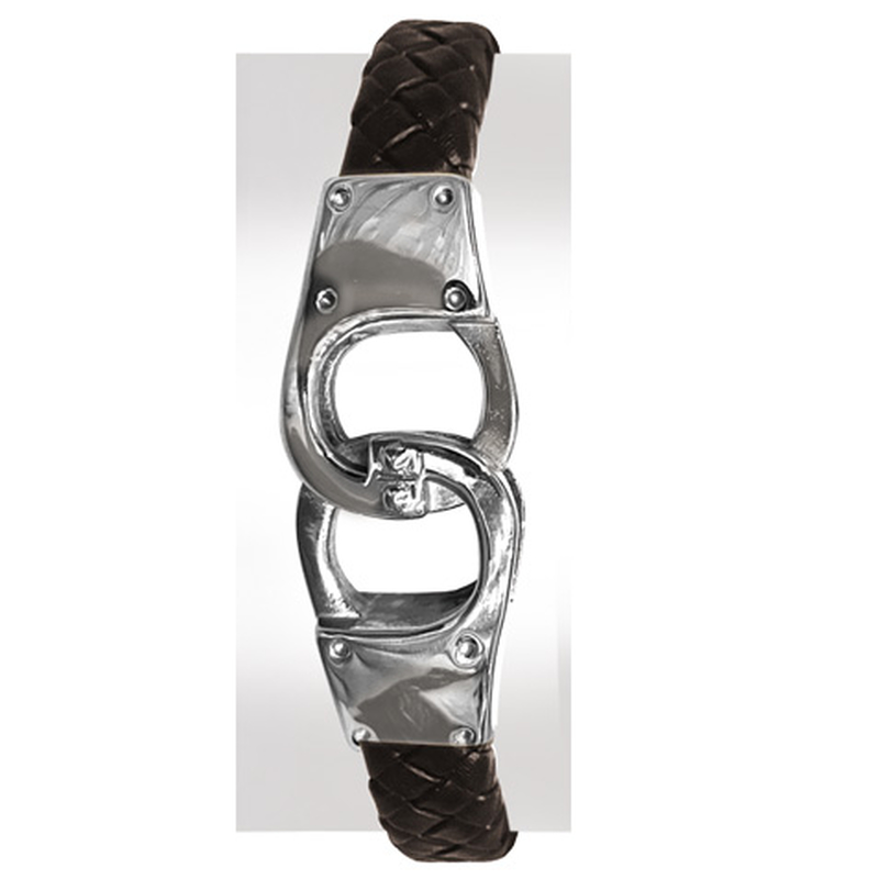 Bracelet semi rigide acier argenté et cuir avec mousqueton ouvrant