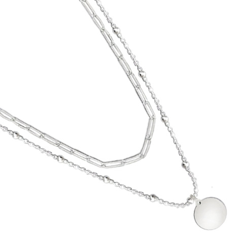 Collier 2 rangs double chaine argent et pastille en 40 + 4cm