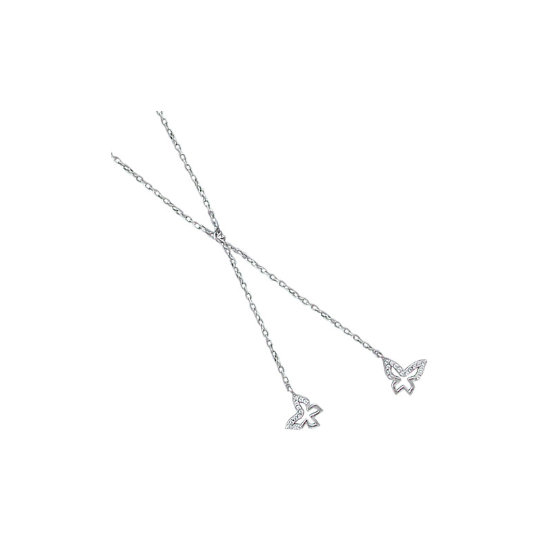 Collier en "Y" en argent et oxyde de zirconium , motif papillon,