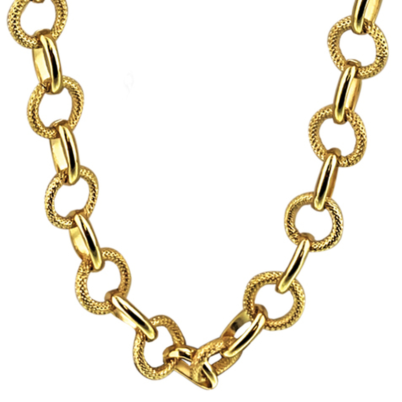 Collier plaqué or maille ronde striée et lisse en 42cm