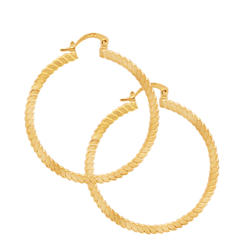 Créoles plates en plaqué or, rayures en relief