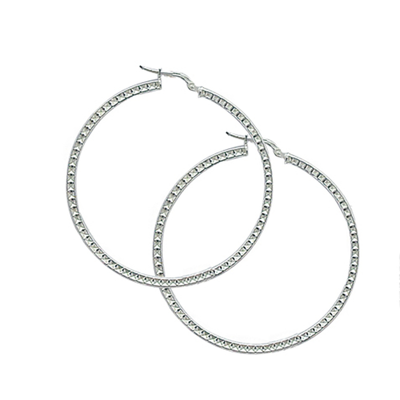 Créoles en argent, fil carré, motif points creux
