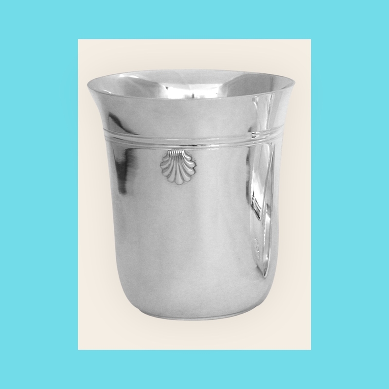 Timbale "Coquille 2" en métal argenté, Hauteur 75mm, Diamètre 60mm, vendue en écrin de présentation uniquement