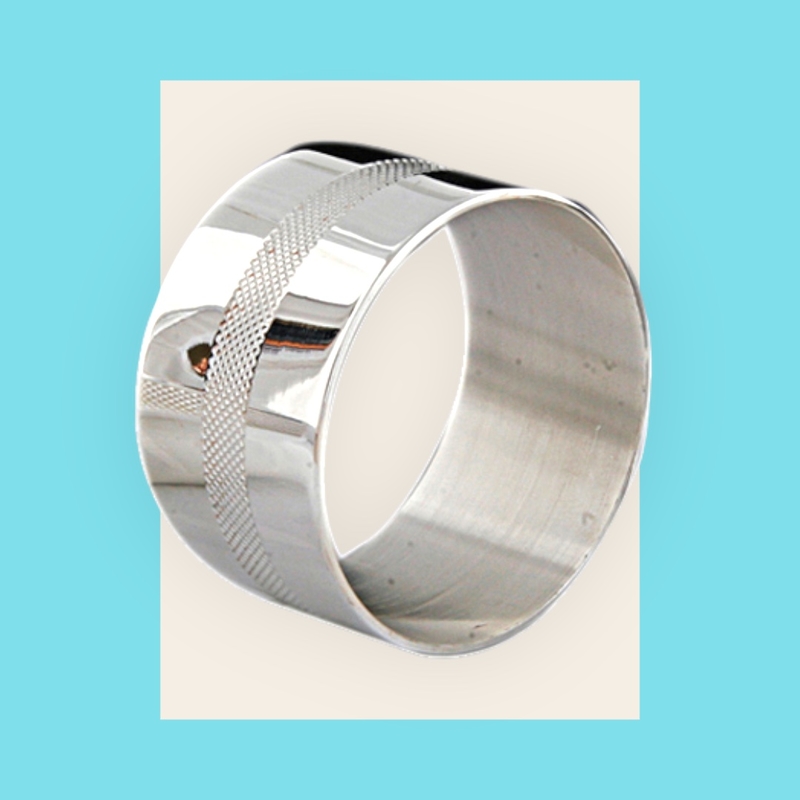 Rond de serviette "Guilloché" en métal argenté vendu en écrin uniquement