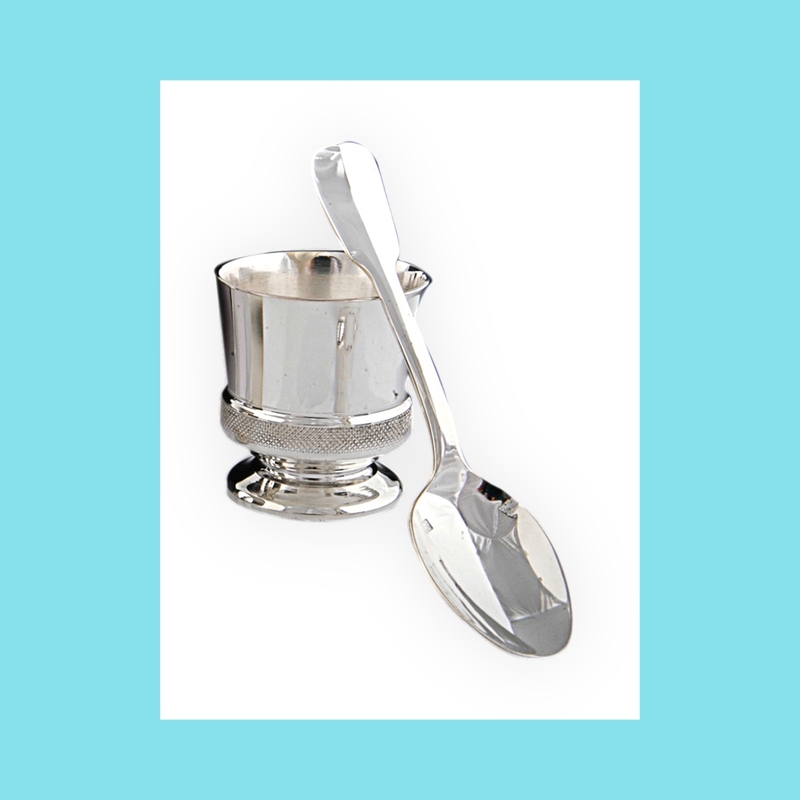 Coquetier "Guilloché" et cuillère à œuf assortie en métal argenté