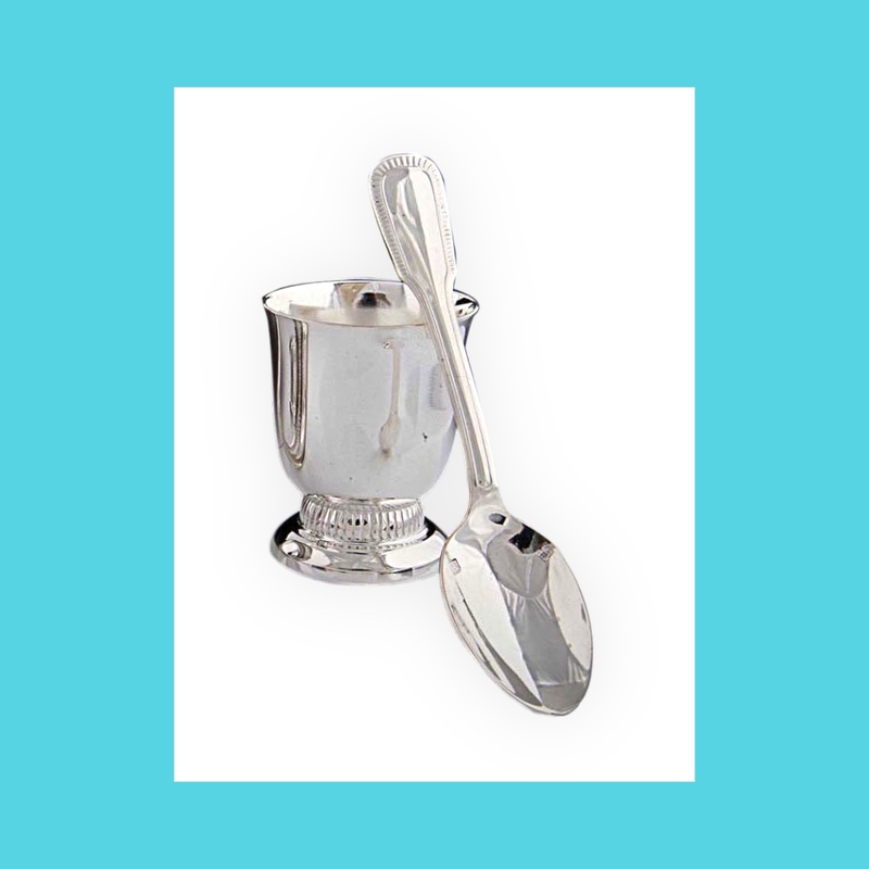 Coquetier "Prestige" et cuillère à œuf assortie en métal argenté