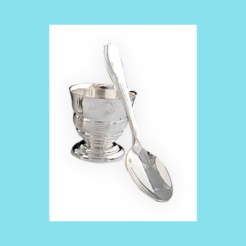 Coquetier "St Clair" et cuillère à œuf assortie en métal argenté