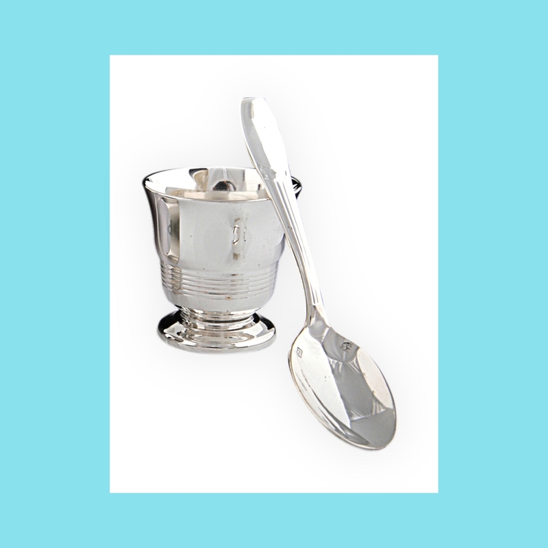 Coquetier "Raspail" et cuillère à œuf assortie en métal argenté