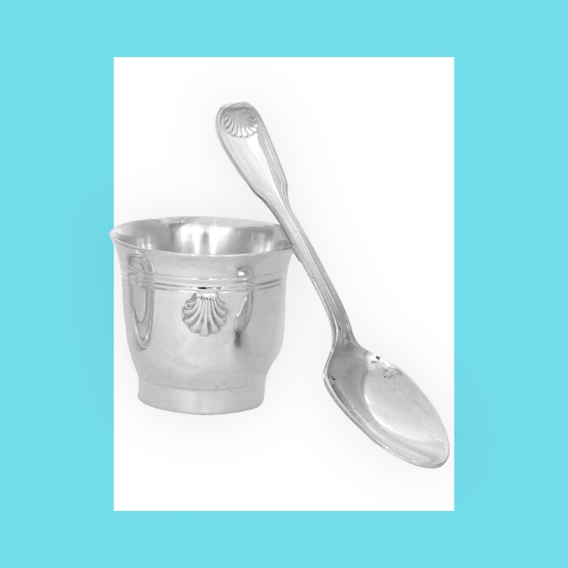 Coquetier "Coquille 2" et cuillère à œuf assortie en métal argenté
