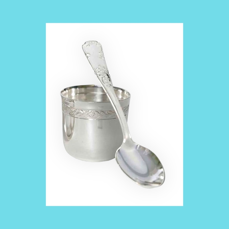 Coquetier "Monceau" et sa cuillère à œuf assortie en métal argenté