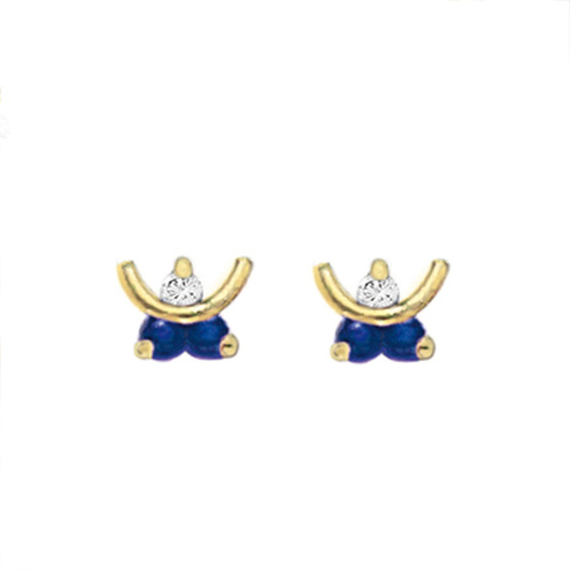 Boucles d'oreilles plaqué or, oxyde de zirconium et saphir