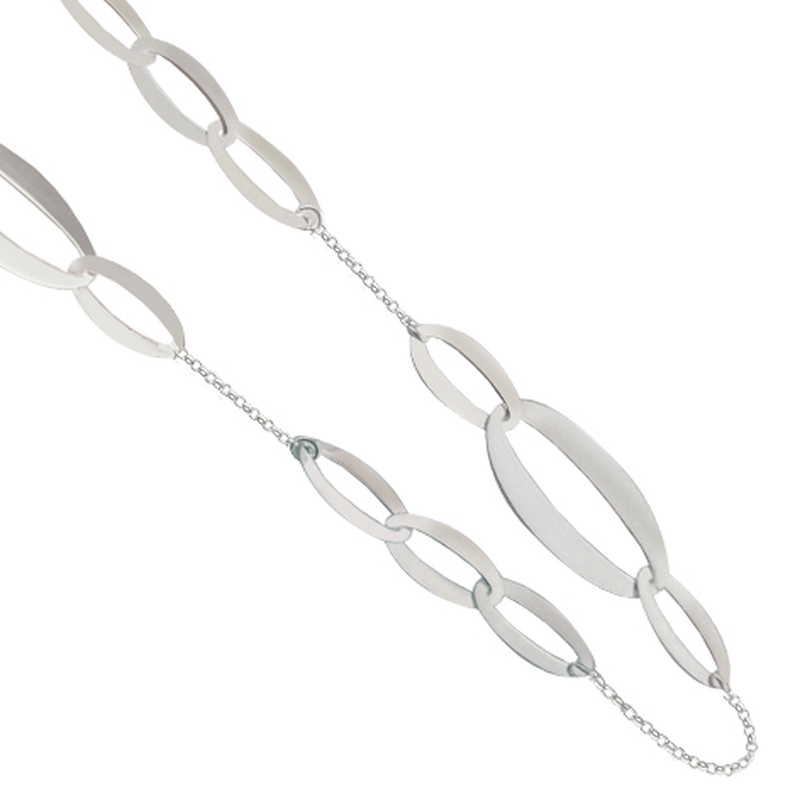 Sautoir argent avec série 3 ovales entrelacés ultra fin en 80cm